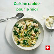 Risotto au poulet, épinards et poireaux
