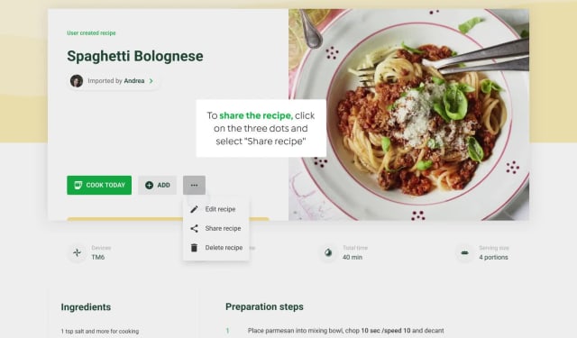 Don't forget to spread the joy by sharing your creations with your friends and family via your preferred channels! Simply click on the three dots on the lower right-hand side of your recipe and select "Share recipe". Then choose to share via social media, email or link.