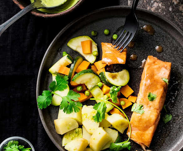 薑味青豆濃湯&萊姆鮭魚佐花椰菜