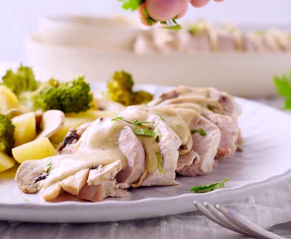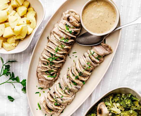 450 g polędwicy wieprzowej pokrojonej w 2 cm plastry