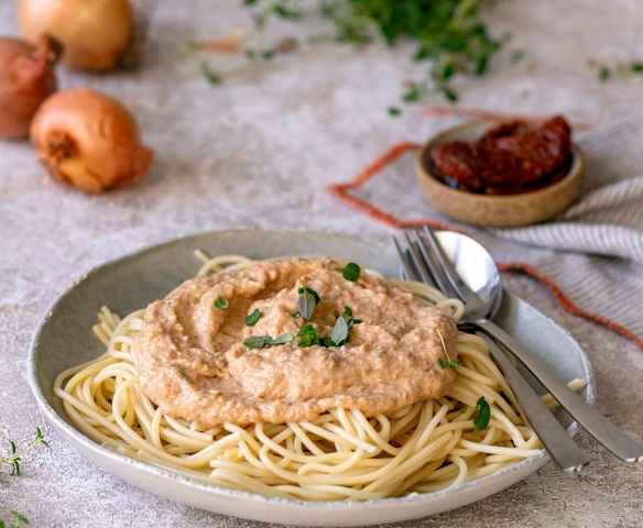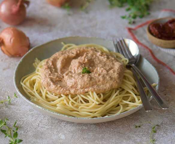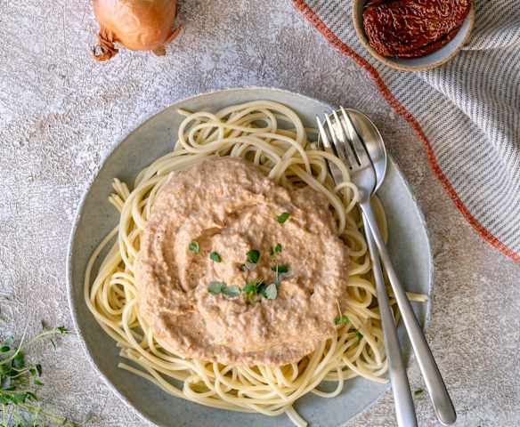 Pasta z kaszy jęczmiennej z suszonymi pomidorami