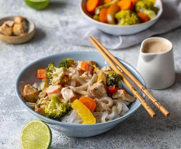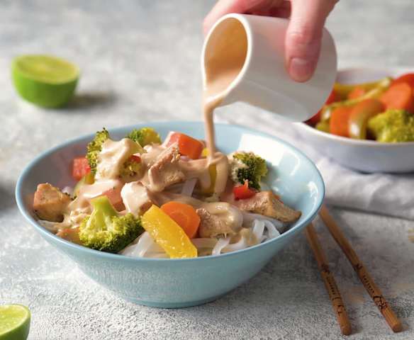 Sos orzechowy z kurczakiem lub tofu na parze