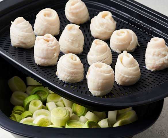 Tongrolletjes met Prei en Pommes Duchesse