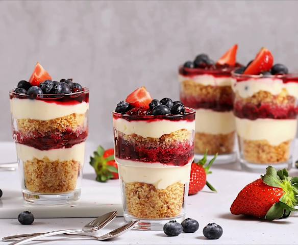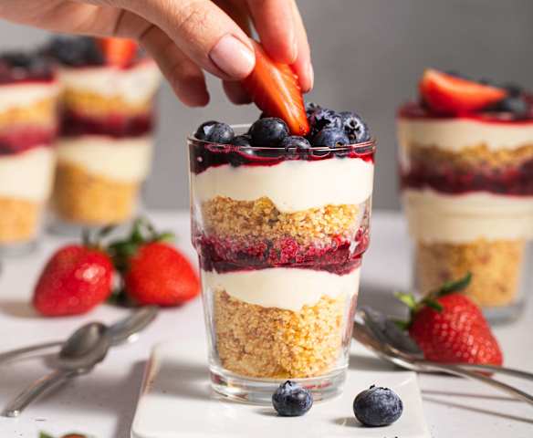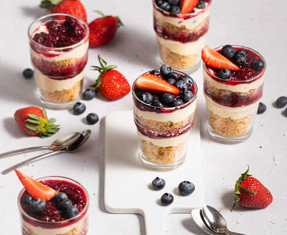 300 g owoców jagodowych, mrożonych, uprzednio rozmrożonych300 g owoców jagodowych, świeżych np. malin, truskawek, borówek, plus dodatkowa ilość do dekoracji