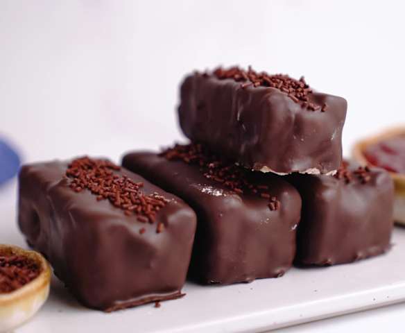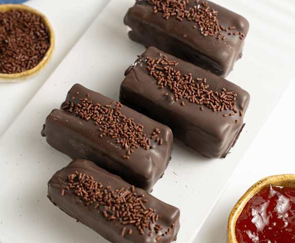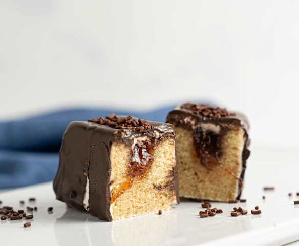 Pastelito de vainilla relleno de mermelada de fresa y vainilla