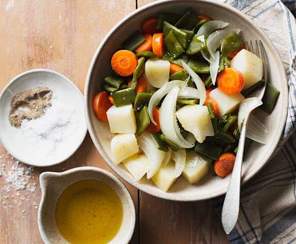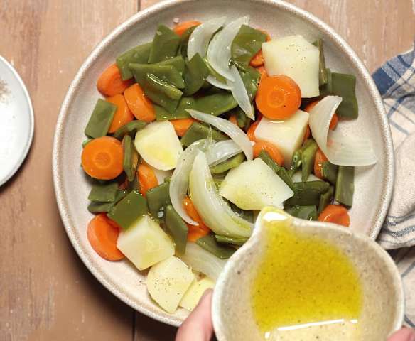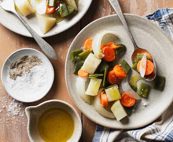 Mostrar todoVerduras al vapor con crema de parmesano