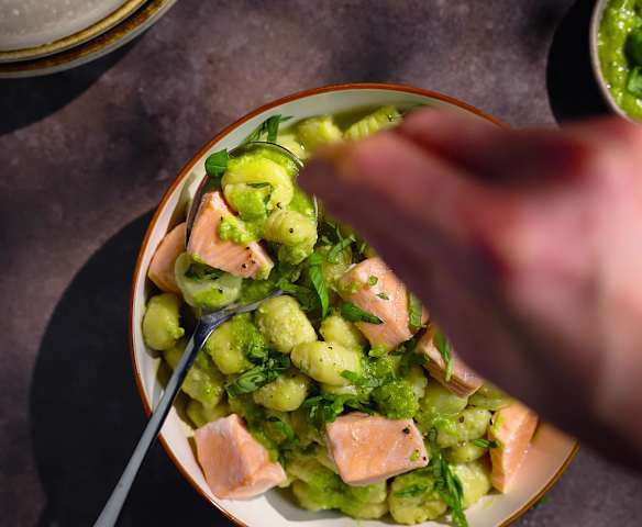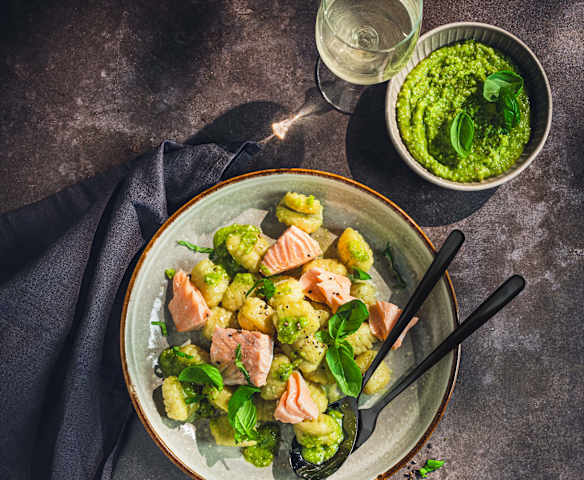 Gnocchi mit Walnusspesto und Lachs