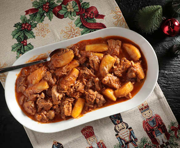 Χοιρινό με κάστανα, μήλα και σάλτσα κονιάκ
