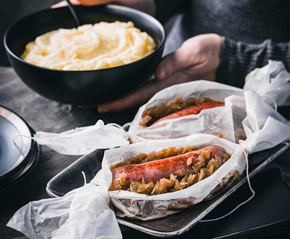 Poitrine de porc, nouilles ramen et sauce barbecue