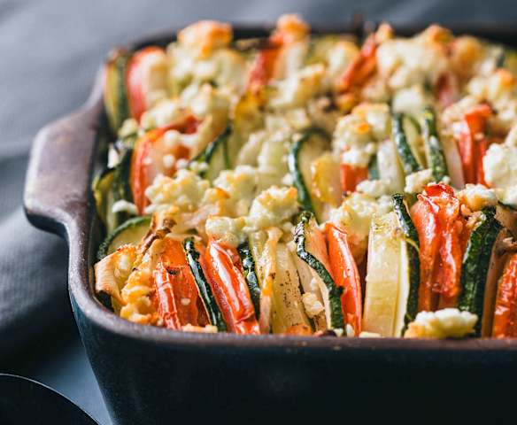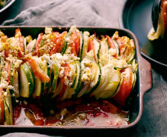 Tian légumes-feta et compotée de poivrons avec le Découpe-minute