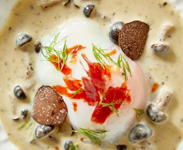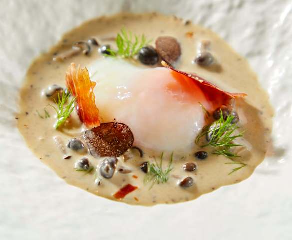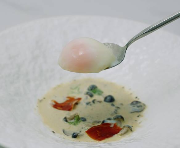 65°c黑松露温泉蛋配帕尔马火腿脆片