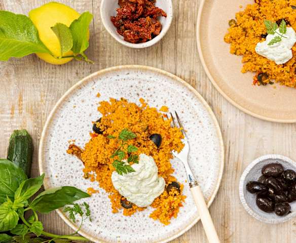 Couscous méditerranéen avec dip au yogourt